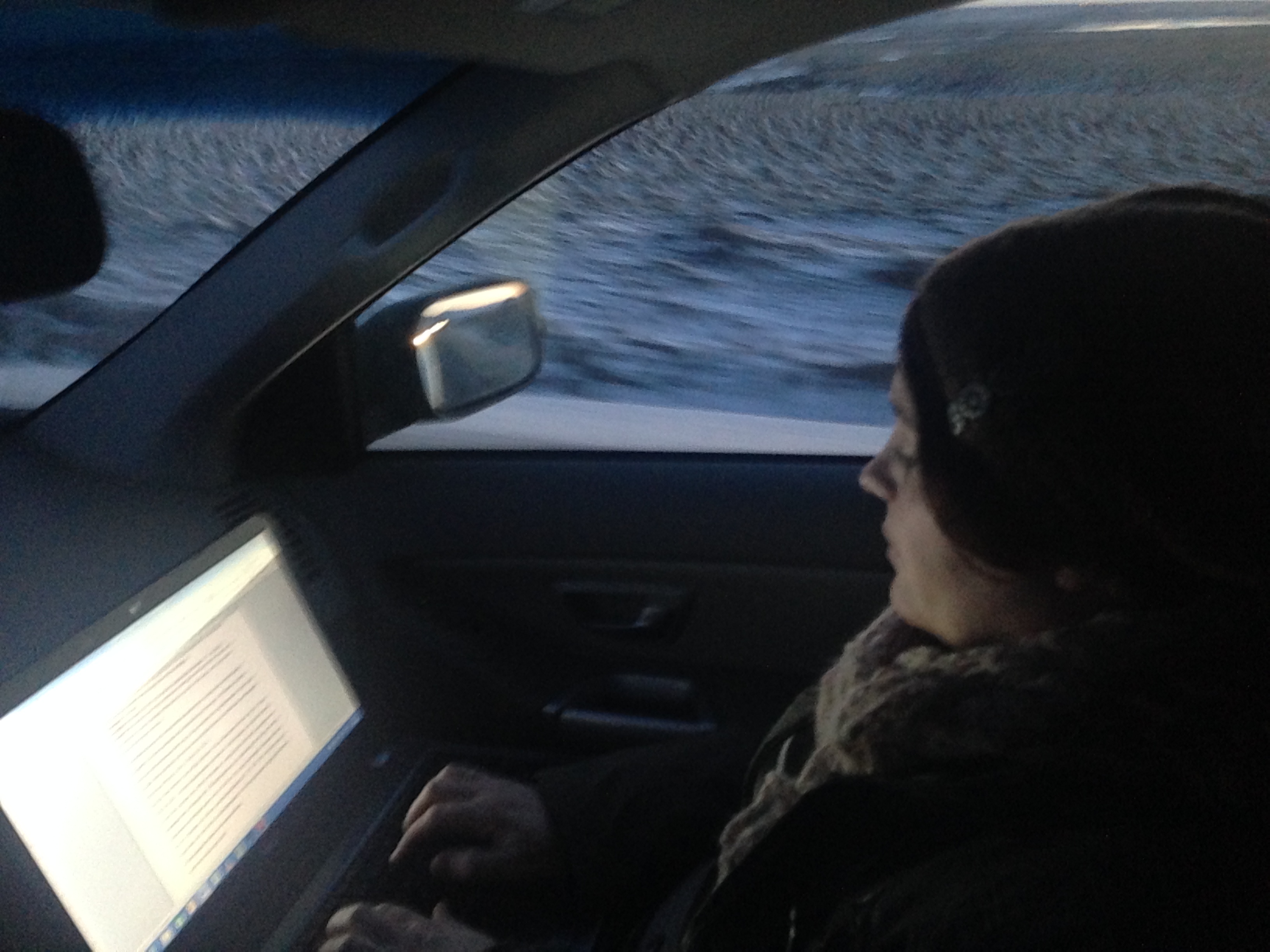Í janúar skelltum við okkur í sumarbústað á Flúðum með Steingrími, Höllu, Svenna og Áslaugu. Þar var mikið hlegið, mikið étið og nokkuð (mikið) drukkið. Eitthvað var lítið tekið af myndum og geri ég ráð fyrir að það hafi verið vegna tímaskorts enda of mikið verið að skemmta sér til að hafa tíma fyrir svoleiðis viteysu. Ég smellti þó mynd af Jónínu á leiðinni í sumarbústaðinn, mjög skemmtilegur ferðafélagi sem ákvað að nota tímann til að læra á leiðinni.