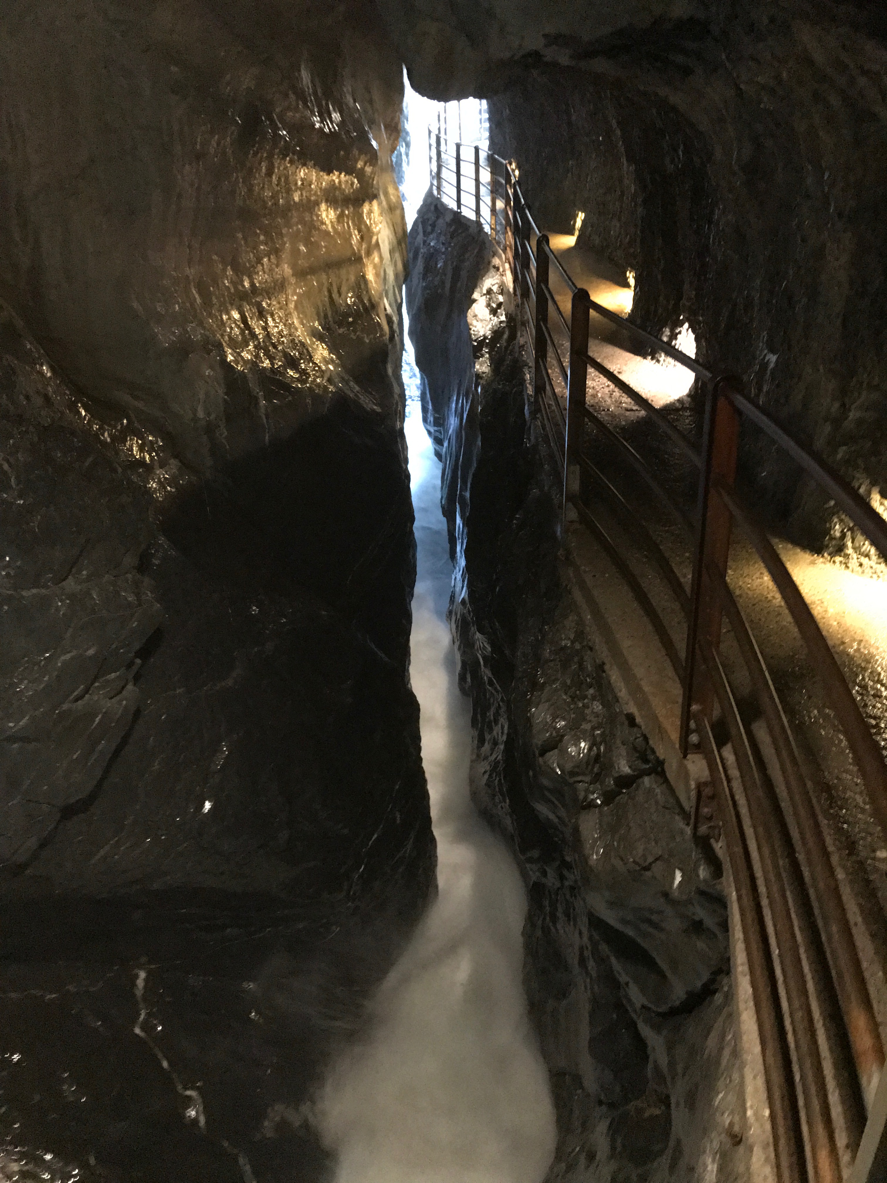 Næstu þrjár myndir sýna hluta af fossunum Trummelbach en þar falla fossarnir í gegnum gljúfur. Þar er hægt að komast mjög nálægt þeim eins og sjá má á þessum myndum en fyrst er farið með lyftu upp og svo er hægt að ganga niður í gegnum gljúfrið og sjá hluta af fossunum rétt við hliðina. Þetta var gert aðgengilegt fyrir ferðamenn árið 1913.