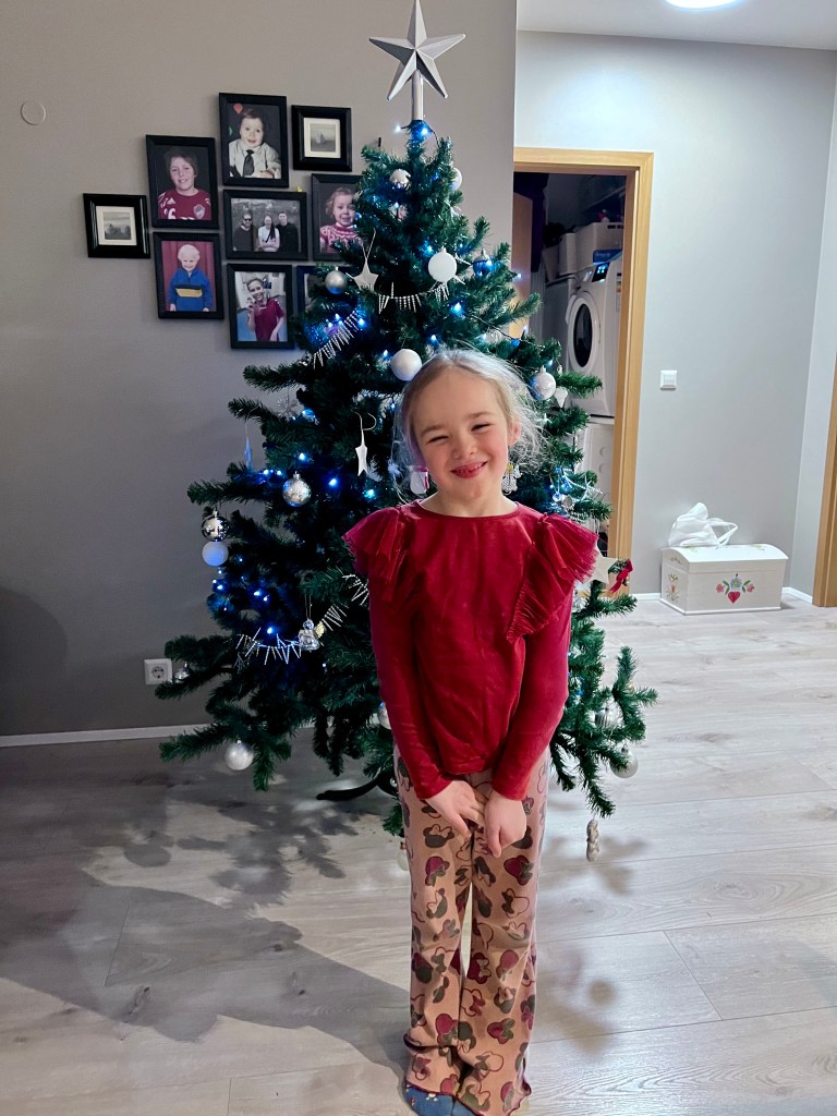 Hjördís að skreyta tréið