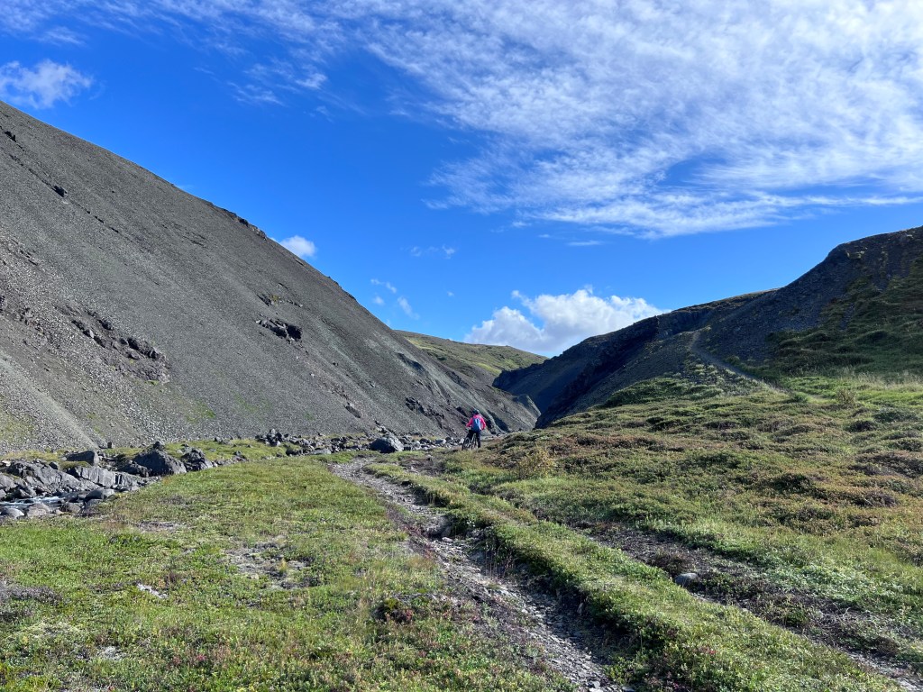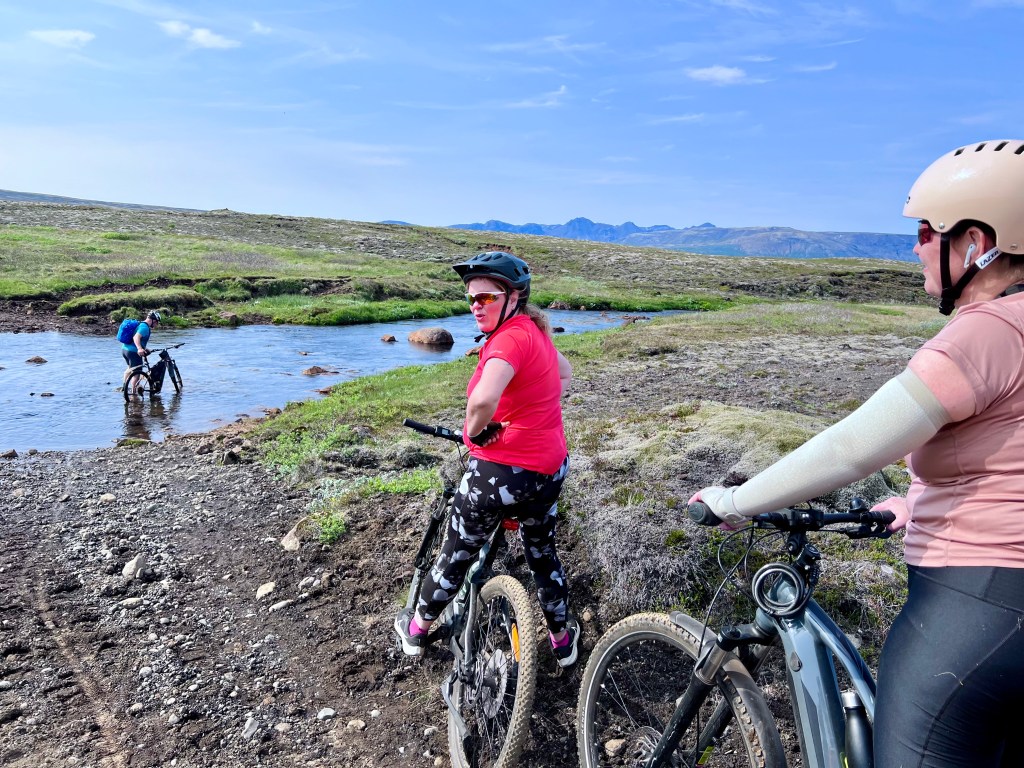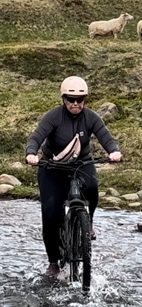 Hjólaferð í Hvalvatnsfjörð þar sem farið var yfir ófáar óbrúaðar ár og Helga Dögg átti svip ársins – sjá mynd 😊