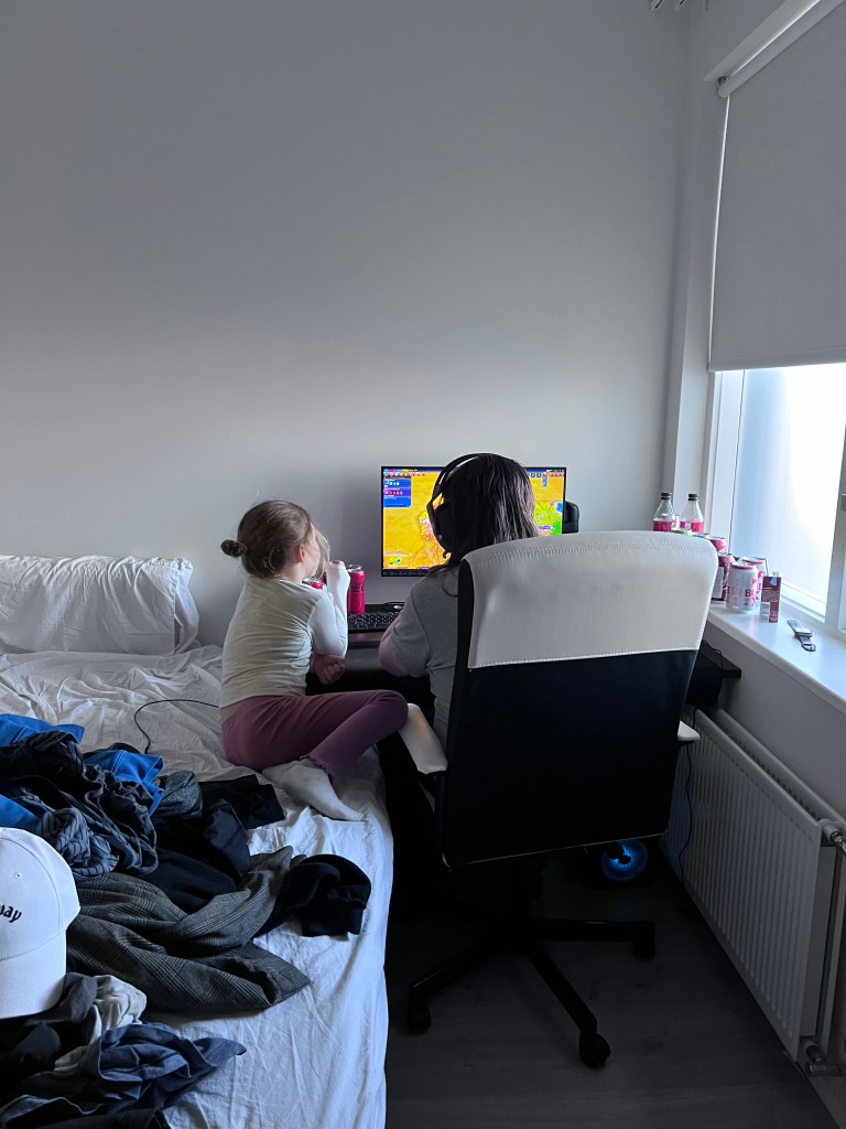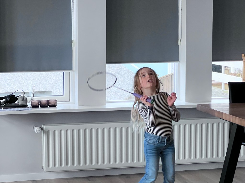 Þegar heim var komið biður börnin eftir okkur og tilkynntu okkur að ein af afmælisgjöfum Jónínu væru litlar gular endur sem væru faldar hér og þar um íbúðina.
